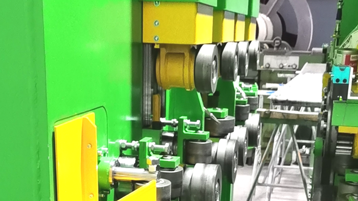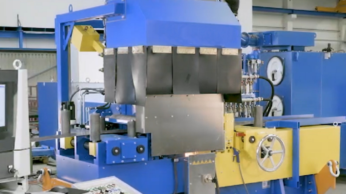 型钢矫直机通过11个辊轮的联合动作,实现型材的矫直,提高原材料的直线度。所有的滚轮可以更换,以适应不同规格的型材。专用的型钢矫直工艺数据库,直接匹配MES系统下发的数据,全自动矫直,支持几乎所有的船用型材;