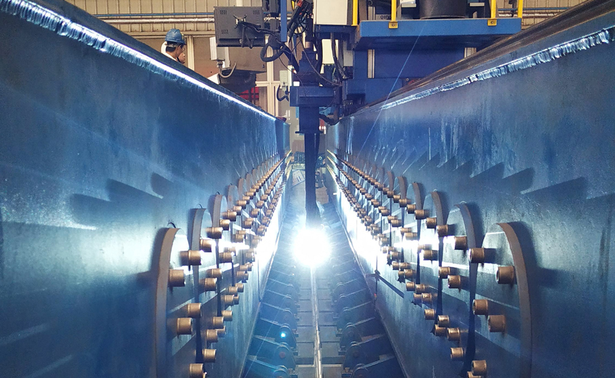 工程机械材料主要以碳钢、中厚板或超厚板为主,采用激光与电弧复合焊接这种优质高效的新型焊接技术,可以兼具激光焊接的高效和电弧焊接的高适应性,高速焊接条件下具有高的焊接过程稳定性,为高性能金属材料高工况适应能力、高质量、高效率、低热损伤、低变形、低缺陷、低能源消耗提供了极佳解决方案。在诸如起重机吊臂、挖机液压吊臂、挖机转轴轴座、港口堆高机机架等众多领域,都有应用。