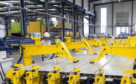 高铁车身材质主要以铝合金为主,车身大部件(包括底板、侧墙、顶板、端板)多采用大中空长挤压型材焊接而成,推荐摩擦搅拌焊和MIG焊工艺。摩擦搅拌焊工艺采用移动龙门式结构,配置激光焊缝跟踪、恒压力恒位置控制系统,在工装胎架上完成焊接;MIG焊工艺则采用动龙门携带机器人完成,为提高效率,机器人多配置为双机系统,配置有误差补偿、焊缝跟踪等修正装置.