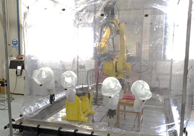 纯氩环境下的等离子弧增材技术,是特殊材料异形难加工的构件的一种重要制造方案。系统采用6+2轴机器人作为主体,安装在纯氩环境的真空罩中。通过对工件的图形建模并分层得出路径,系统自动将路径转换为机器人运行轨迹,并由机器人和外部轴联动,逐层完成等离子弧堆焊,最终将工件的堆焊而成。该技术在航空航天的钛合金异形零部件的制造中得以应用。